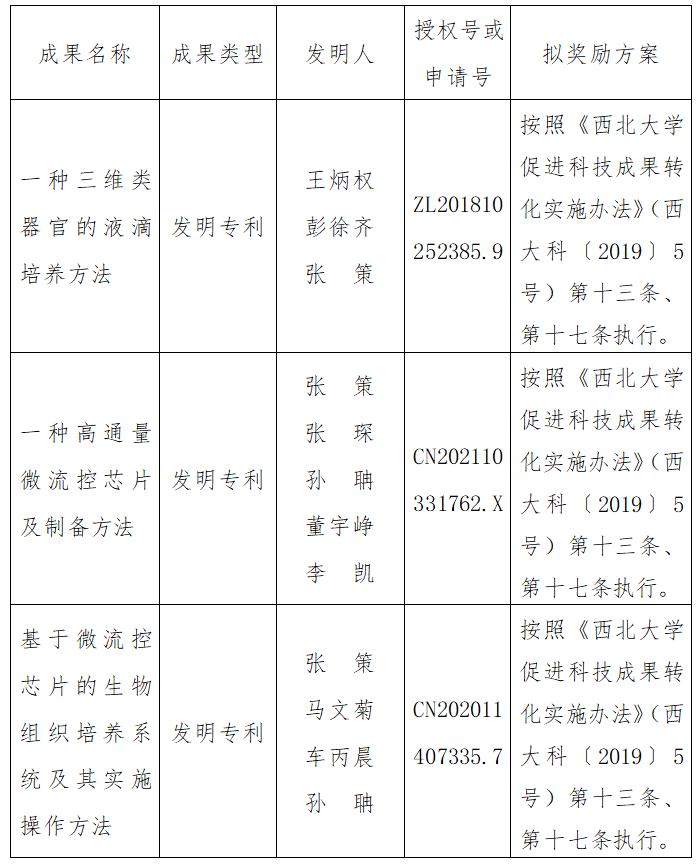 按照《球友会网页版登录入口促进科技成果转化实施办法》(西大科〔2019〕5号)相关规定,拟对球友会网页版登录入口光子所张策教授作为成果负责人的3项发明专利(申请)权实施转化,现将相关信息公示如下: