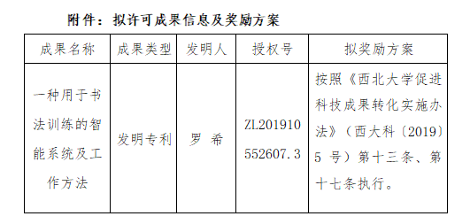 按照《球友会网页版登录入口促进科技成果转化实施办法》(西大科〔2019〕5号)相关规定,拟对球友会网页版登录入口艺术学院罗希老师作为成果负责人的1项发明专利权实施普通许可,现将相关信息公示如下: