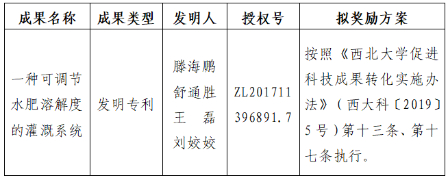 按照《球友会网页版登录入口促进科技成果转化实施办法》(西大科〔2019〕5号)相关规定,拟对球友会网页版登录入口化工学院滕海鹏副教授作为成果负责人的1件发明专利权实施转化,现将相关信息公示如下: