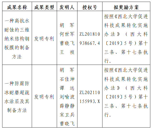 按照《球友会网页版登录入口促进科技成果转化实施办法》(西大科〔2019〕5号)相关规定,拟对球友会网页版登录入口化工学院胡军教授作为成果负责人的2项发明专利权实施转化,现将相关信息公示如下: